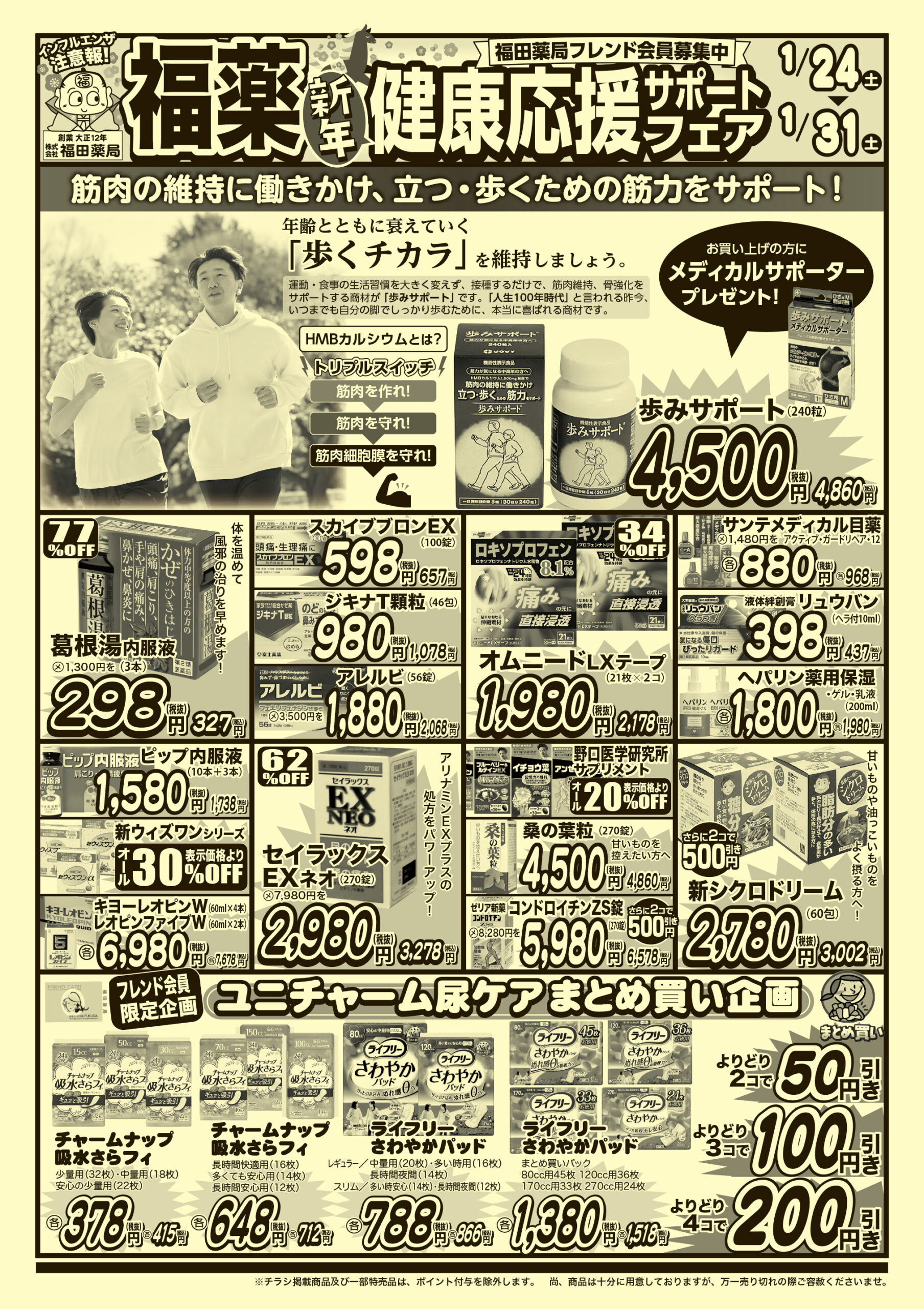 1月後半の福薬通信は、新年の生活応援セールとこれからの健康づくりを応援する内容が盛りだくさん!