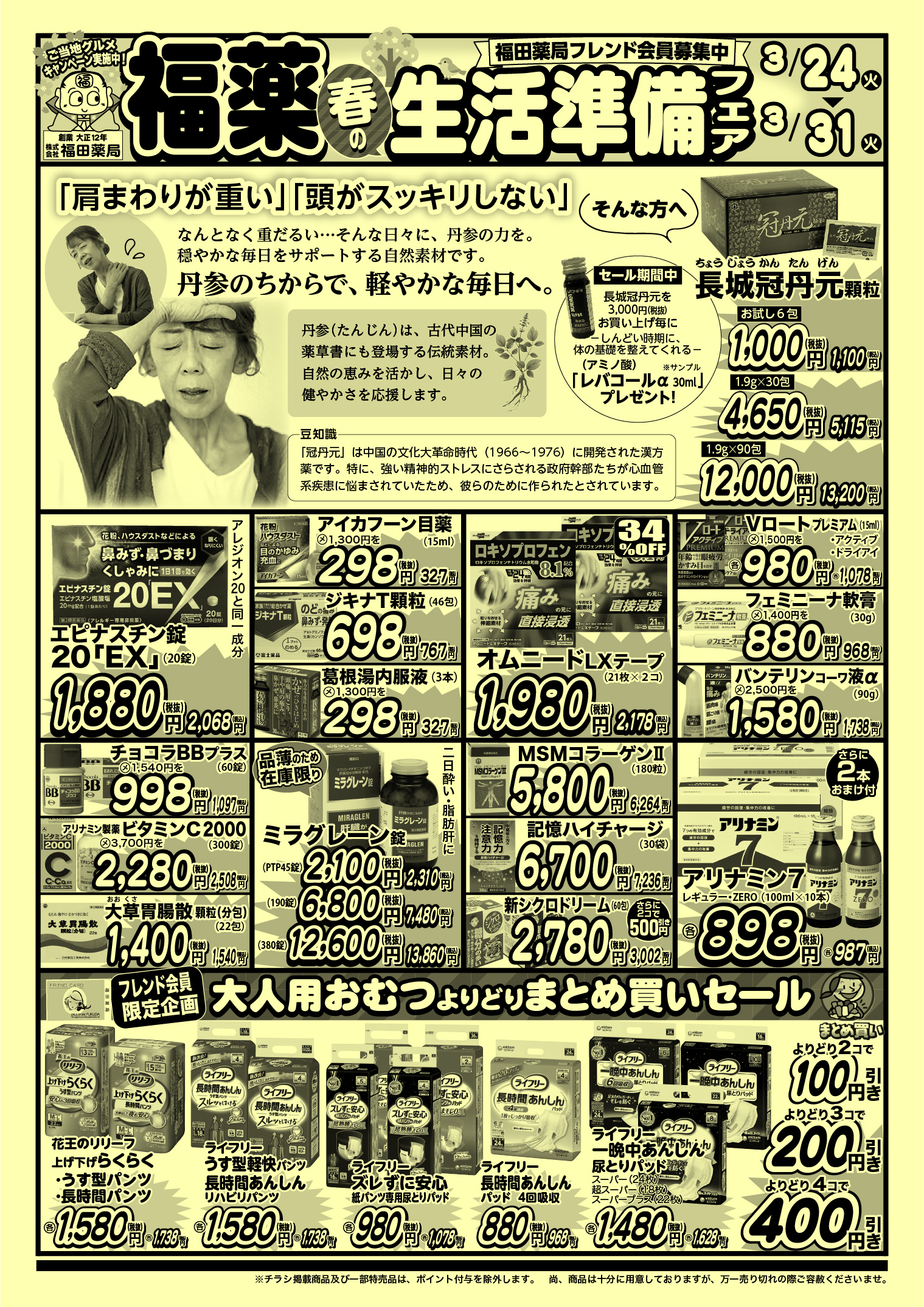 新生活に欠かせない日用品の「日替わり超特価」や、春の体調を整えるおすすめ商品をご用意しております。