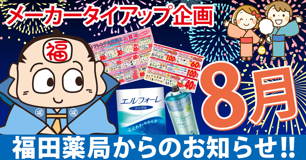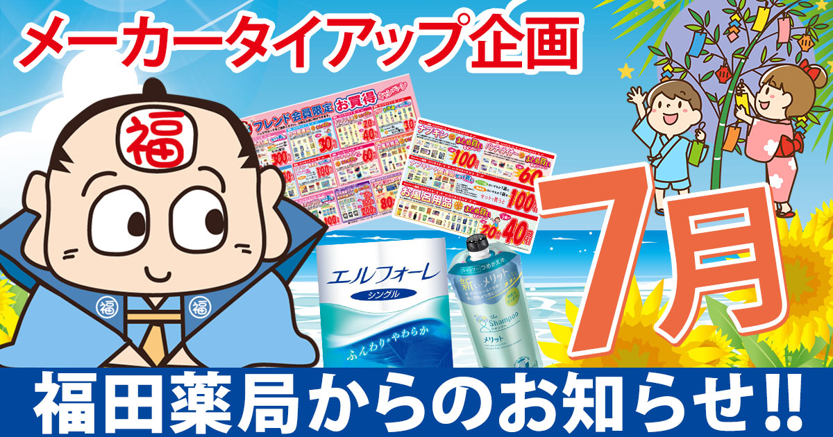 こんにちわ!福田薬局です。毎日晴天ですね。 本当に暑くなりました・・・ 🙁 本日より7/11(日)まで夏の快 […]