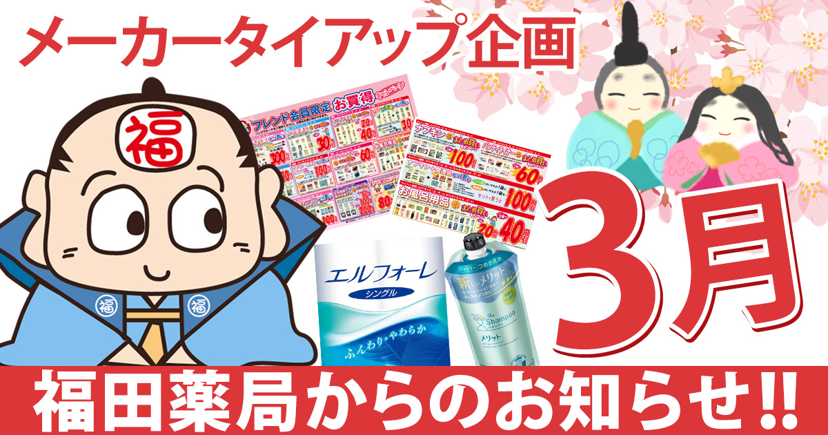 3月24日10:00スタート!福薬生活準備フェア! お買い得品を豊富に取り揃えて皆様のご来店をお待ちしておりま […]