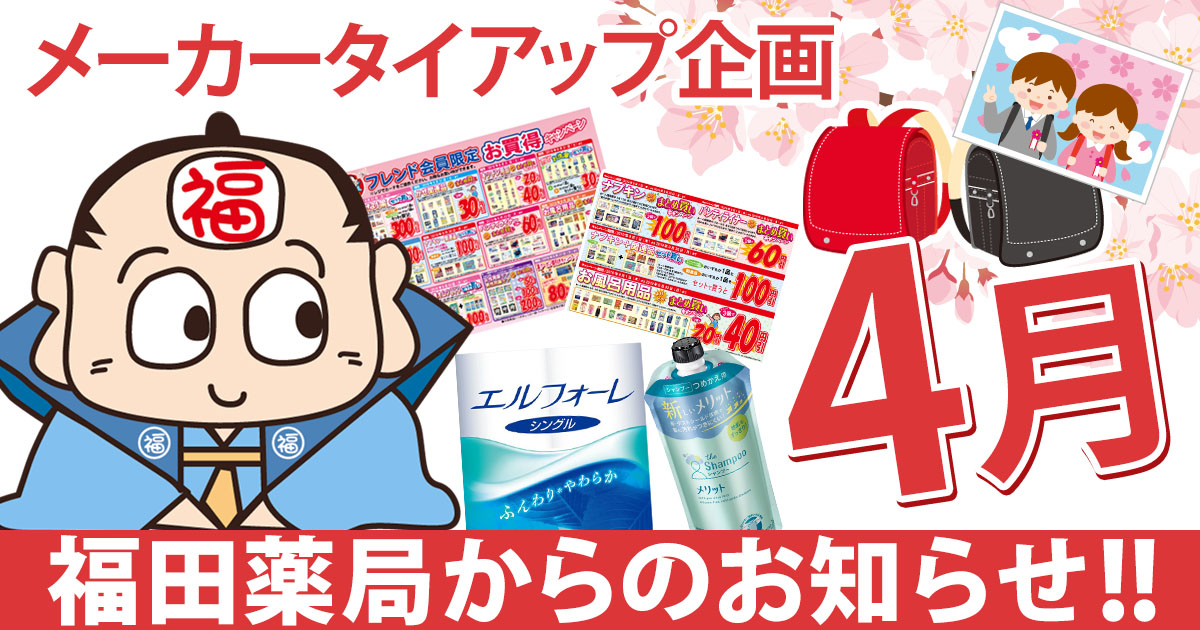 4月23日10:00スタート!福薬の春の応援ライフフェア! お買い得品を豊富に取り揃えて皆様のご来店をお待ちし […]