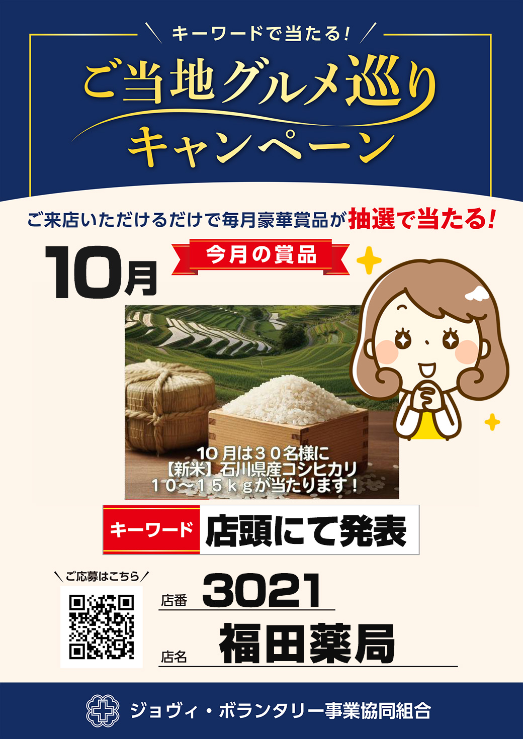 キーワードは店頭にて!10月のご当地グルメ巡りは『新米 石川県産コシヒカリ』