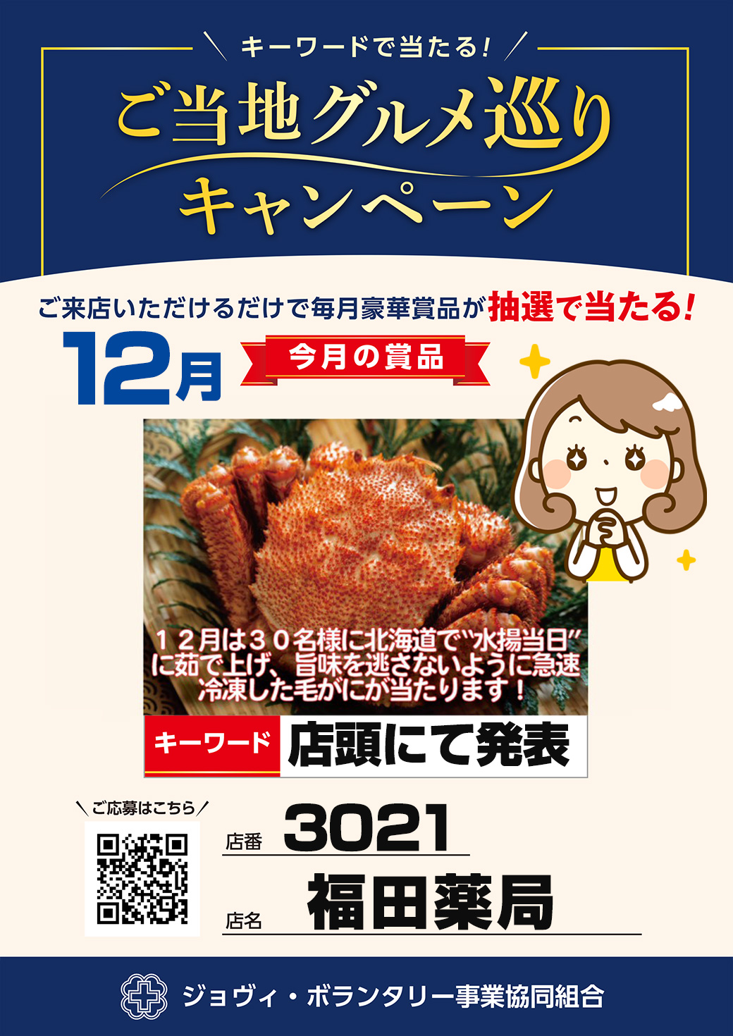 キーワードは、福田薬局坂本店に店頭にて発表。ご来店の際ご確認ください!