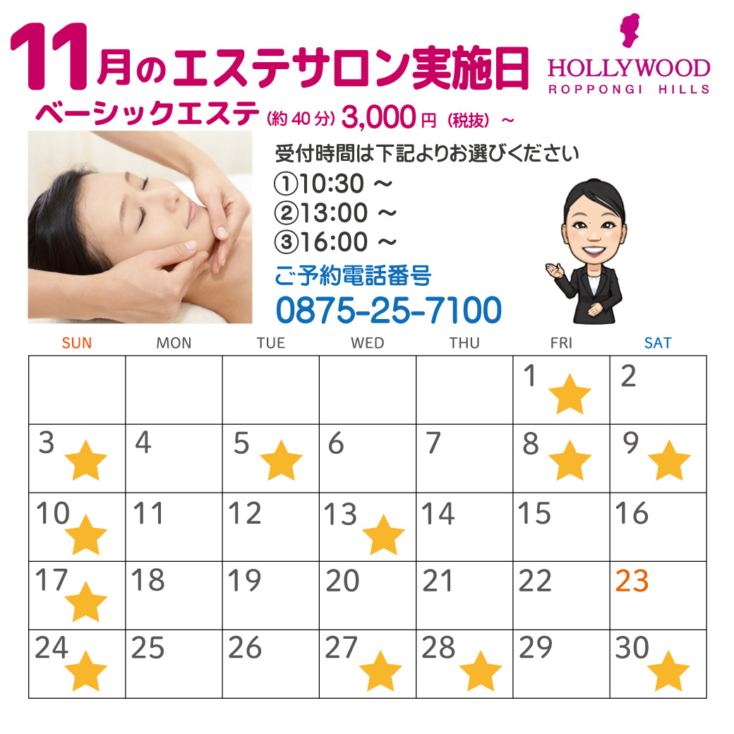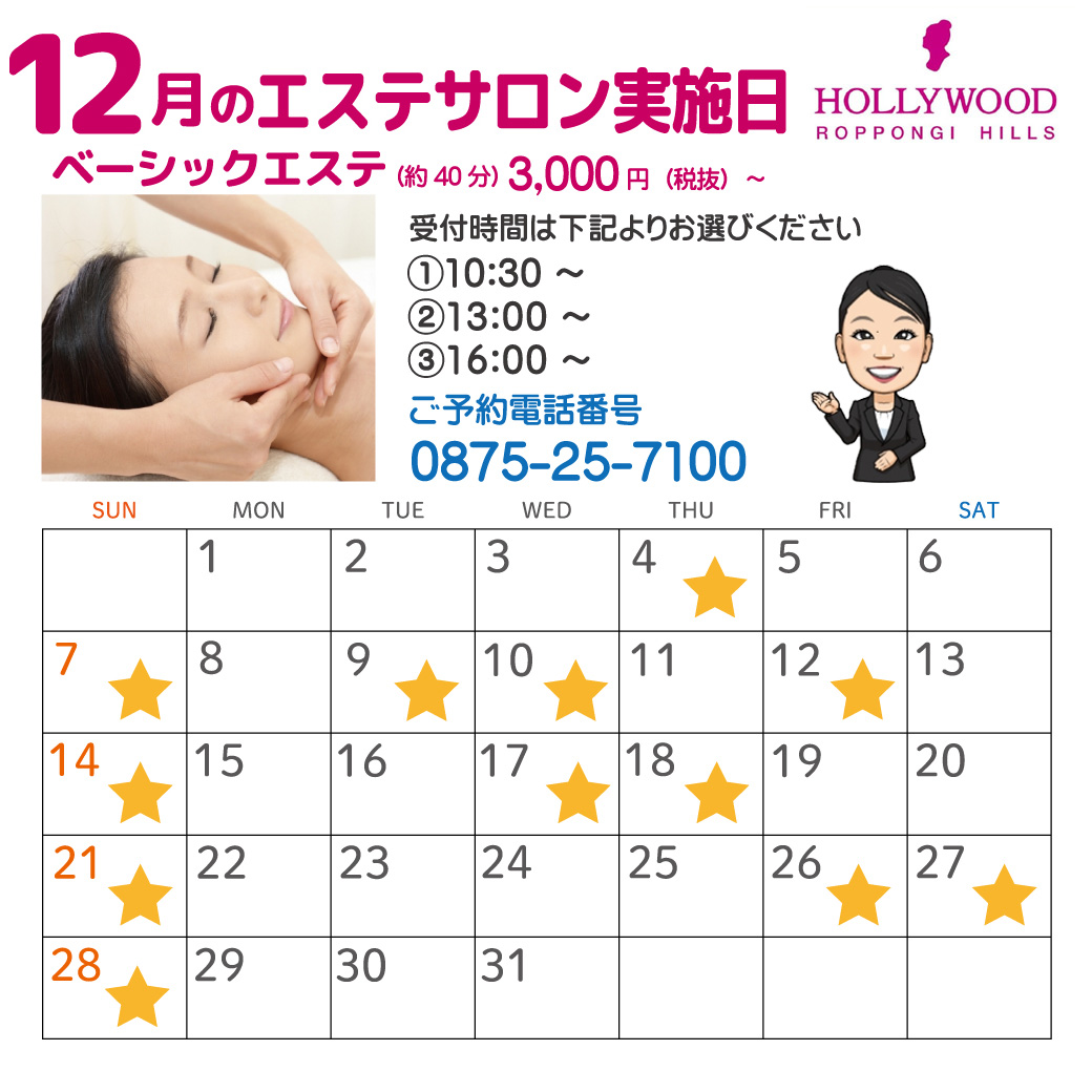 ※ご予約、エステの詳細はお電話または店頭スタッフまでお問い合わせください。